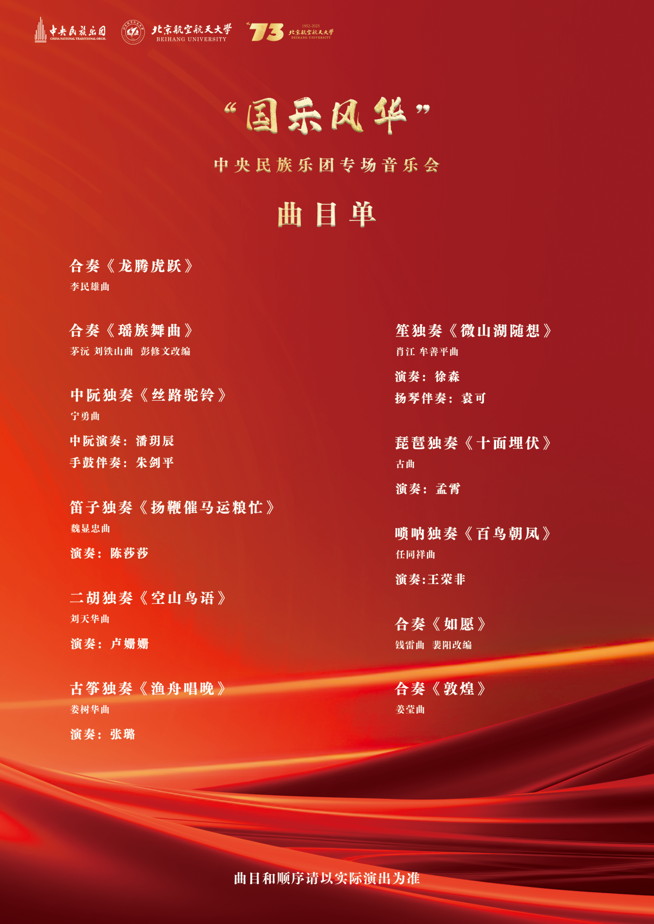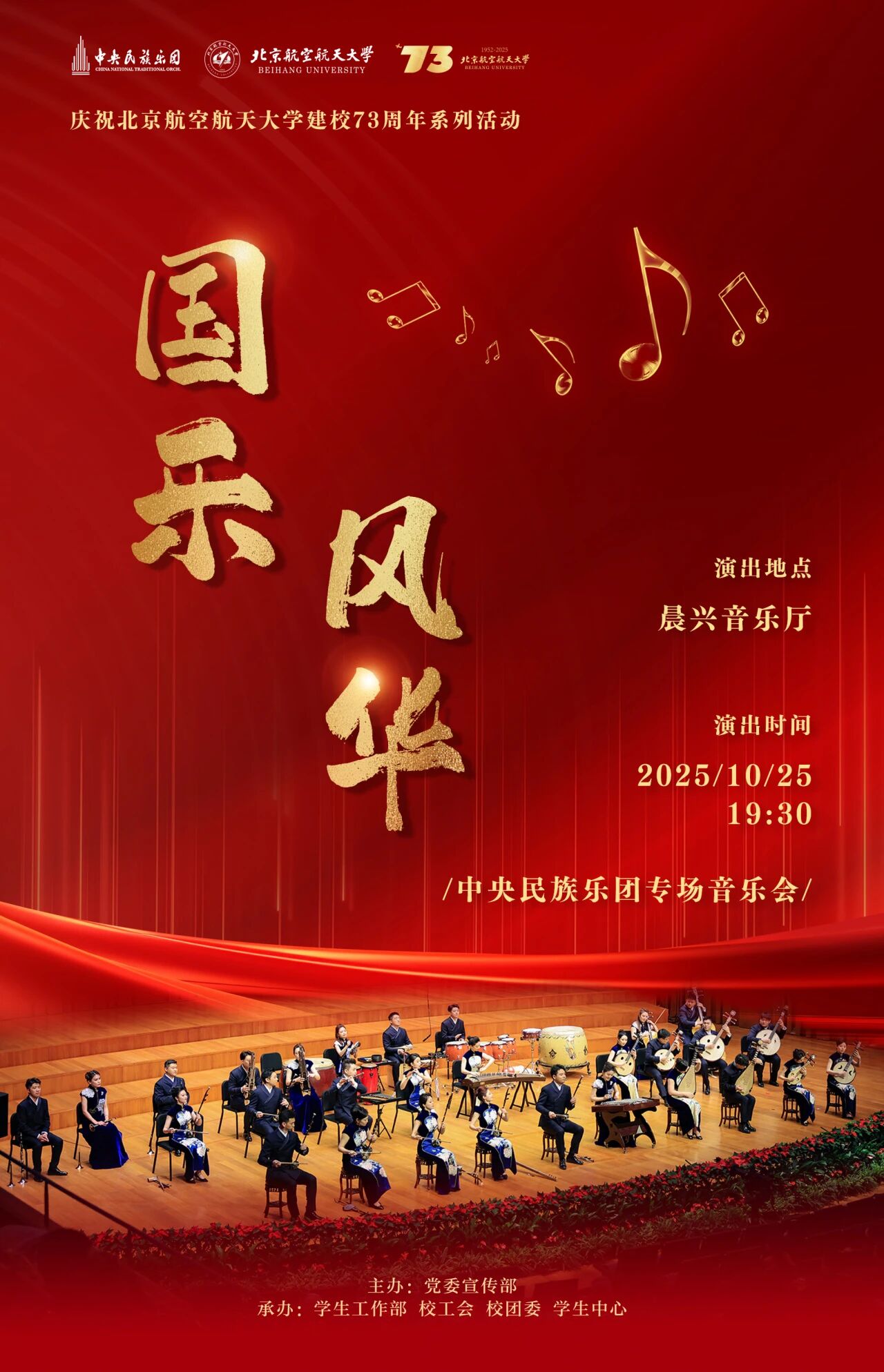¡¾Çì×£×ðÁú¿Ê±½¨Ð£73ÖÜÄêϵÁл¡¿¹úÀַ绪ÖÐÑëÃñ×åÀÖÍÅר³¡ÒôÀÖ»á