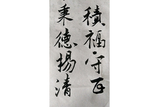 创意说明:守护道义 ,即是为人为己积攒福分  ;秉持德操 ,即是为民为世激浊扬清 。作者挥毫泼墨 ,以刚劲有力的字迹写下为官做人的八字箴言 ,寄托了对当政者力透纸背的希冀期待 。
